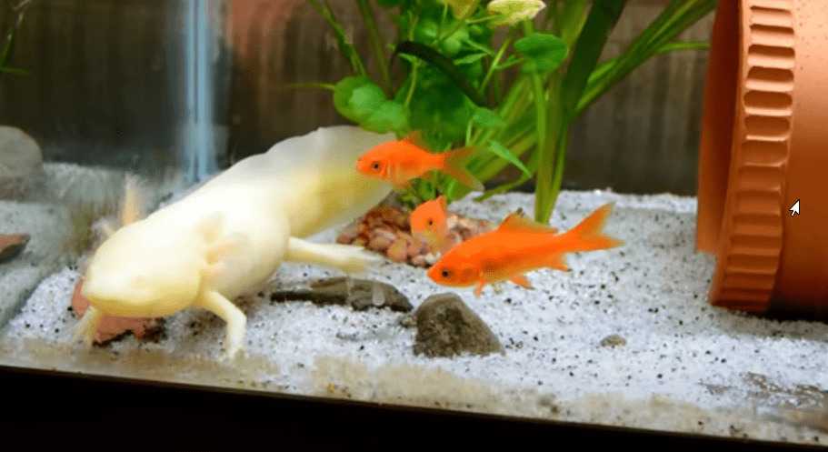 Содержать аксолотля в аквариуме нужно отдельно от других водных обитателей, в том числе и рыб. Жабры и тонкая кожа дракончика могут быть атакованы, из-за чего возникают повреждения, причиняющие ему дискомфорт, а в некоторых случаях и приводящие к гибели. Единственным исключением являются золотые рыбки.
