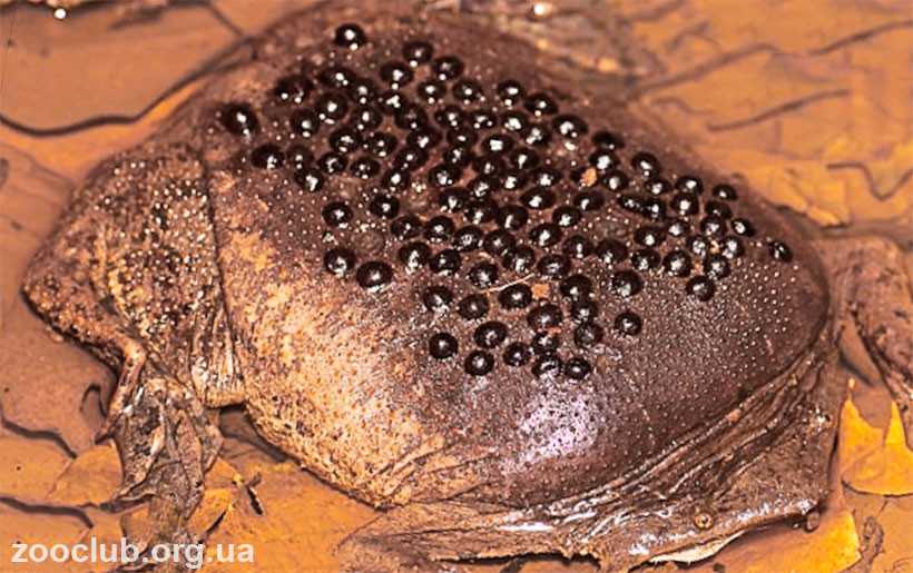 Представители этого вида используют весьма необычный для земноводных способ размножения. Развитие яиц и их трансформация происходит непосредственно в коже на спине самки, густо пронизанной кровеносными сосудами.