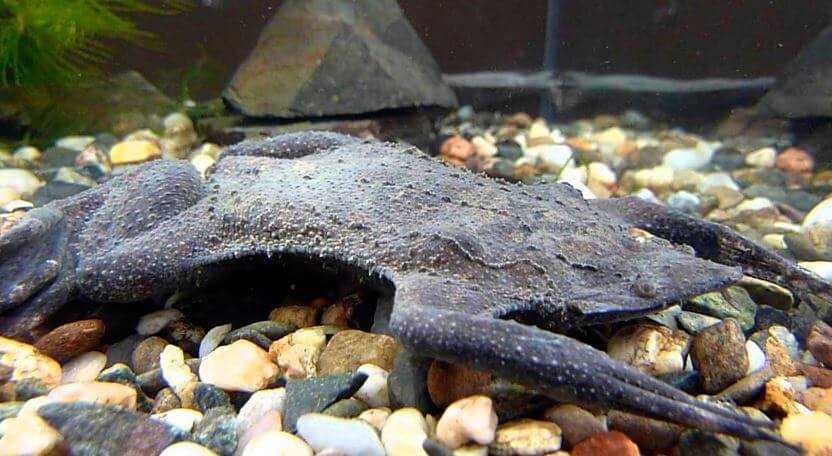На дне может лежать галька крупного размера. Гравий должен быть крупным и обкатанным. Если положить песок или грунт, то животные постоянно будут его перекапывать, и вода станет мутной.