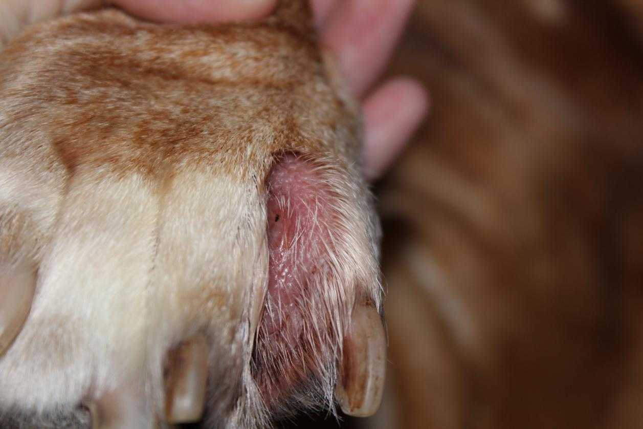- появление красных участков в области подмышек, морды, конечностей, анального отверстия,