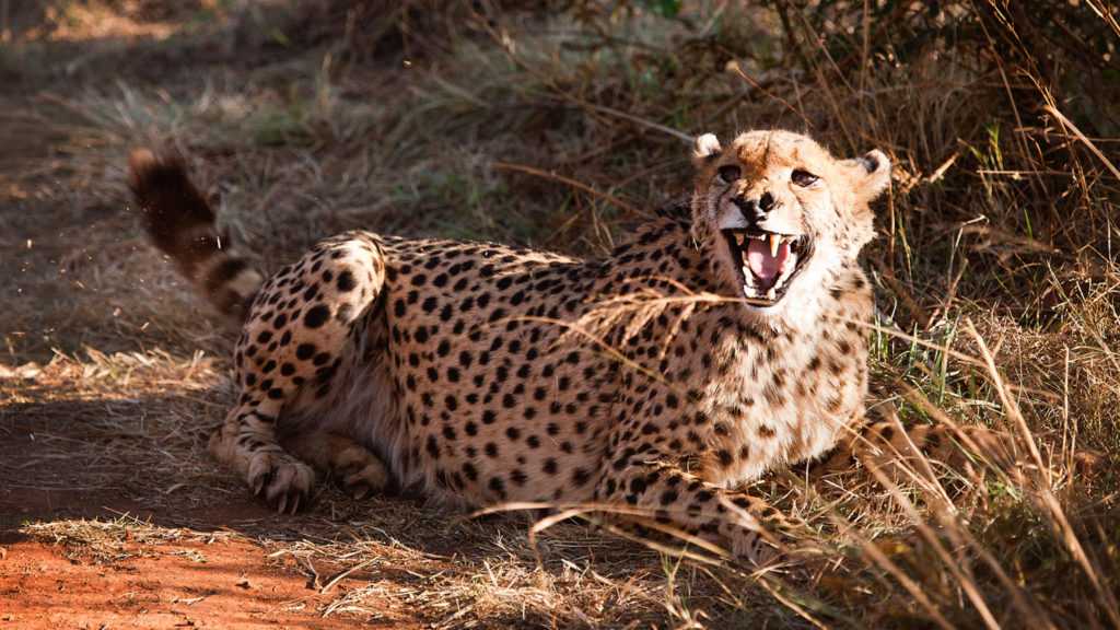 - Гепарда легко отличить внешне — на морде у них есть черные полоски от уголков глаз к пасти, своеобразные черные слезные дорожки.