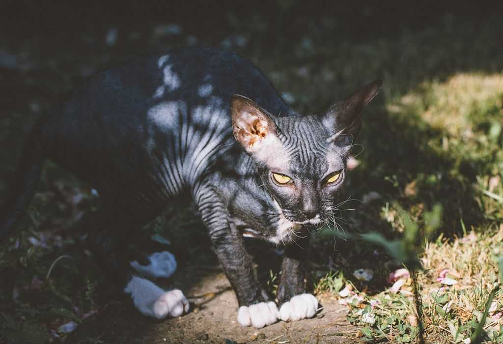 Абсолютно бесшёрстные считаются наиболее экзотичными. У этих котов не найдёте ни одного волоска. Но и они бывают разными. Есть голые донские кошки с сухой и гладкой кожей. Других можно гладить с трудом – прилипает рука.