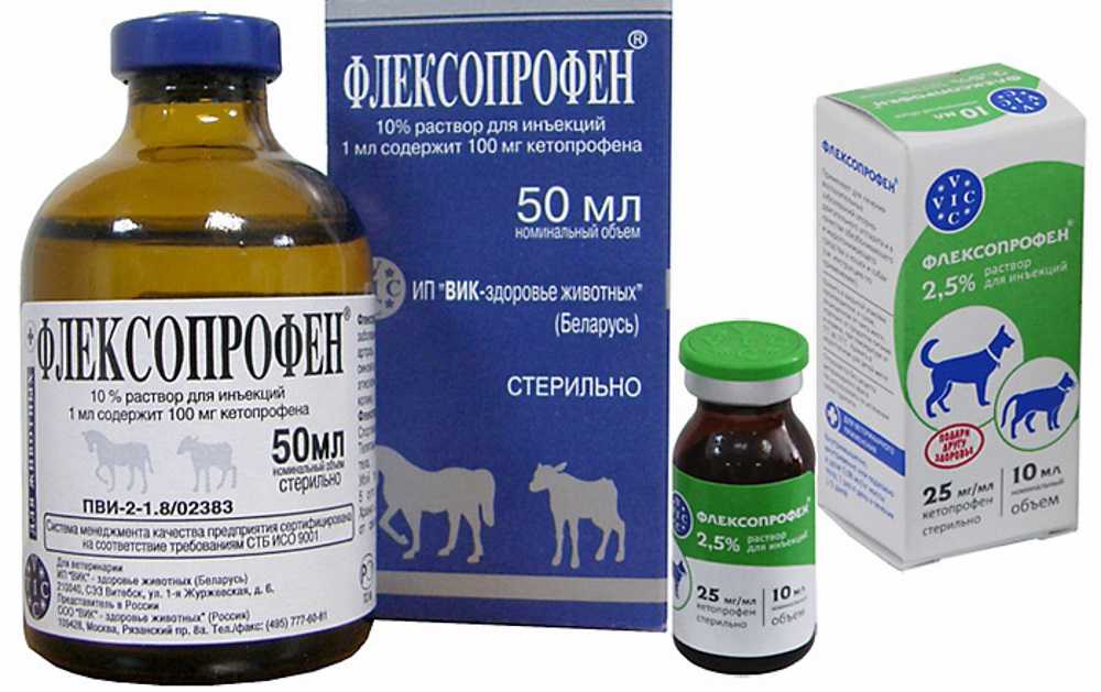 Производством препарата Флексопрофен для собак, кошек, крупного рогатого скота, свиней и спортивных лошадей занимается российская фармацевтическая . Лекарство представляет собой бледно-желтый или бесцветный прозрачный раствор, имеющий специфический запах. Жидкость расфасована по 5−250 мл во флаконы из темного стекла, укупоренные резиновыми пробками и алюминиевыми колпачками. В продажу медикамент поступает в картонных пачках. В каждую из них производитель помещает 1, 6 или 10 флаконов с раствором и подробную инструкцию по применению.