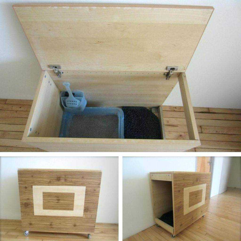 Многие владельцы жалуются на неприглядность кошачьего туалета. Скрыть лоток можно, поместив его в коробку, декорированную на вкус доморощенного дизайнера.