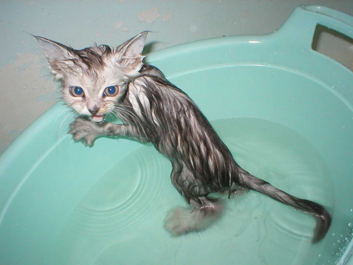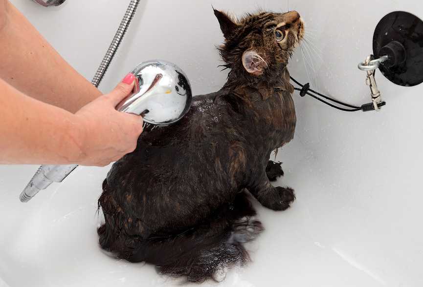 Набрав в ванну немного воды (не более, чем до середины туловища кошки), следует осторожно начать мочить лапы — так кот сможет понять, что не происходит ничего опасного для него. Не нужно пугать кошку душем или мытьем из крана — лучше аккуратно поливать водой из кувшина или ковша