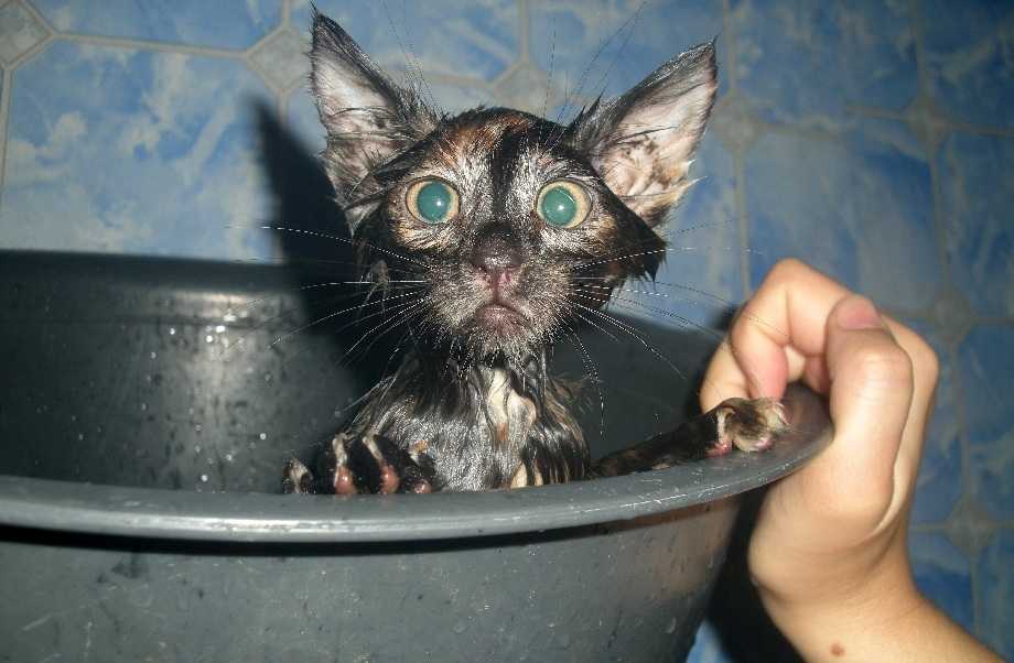 Для мытья лучше использовать специальный шампунь от паразитов. Хозяину следует быть готовым к тому, что котенок негативно отнесется к процессу, будет вырываться, пустит в ход когти и зубы.