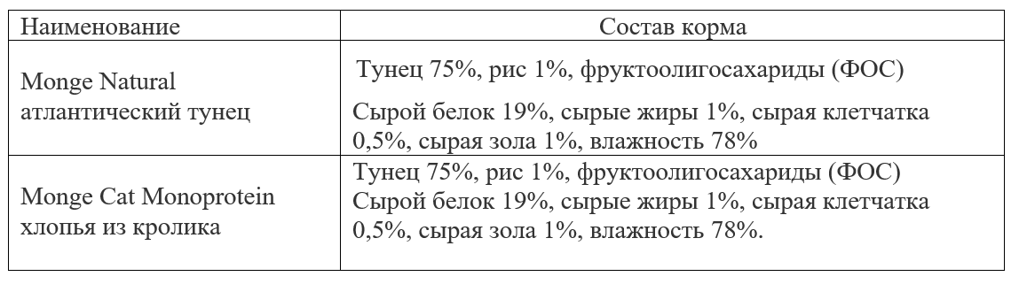 Производители влажных кормов приводят следующие рецепты кормосмесей:
