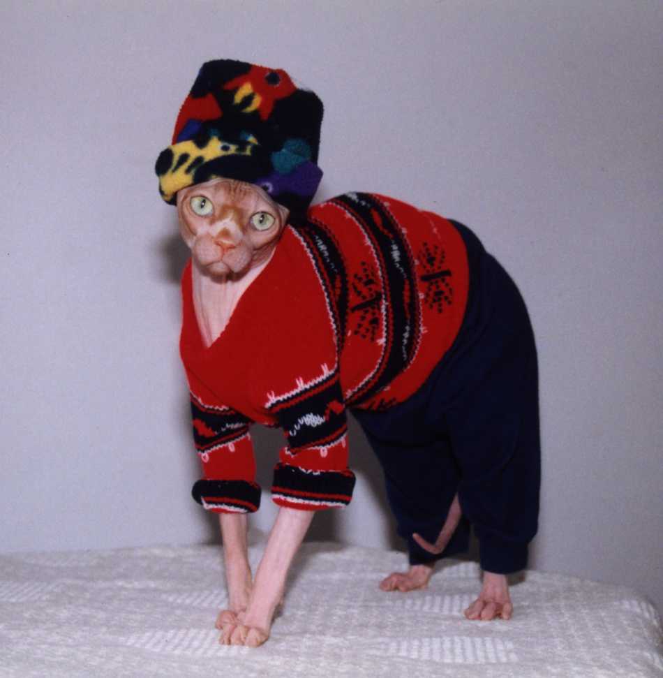 Канадские сфинксы. В прохладном помещении или на улице они замерзнут быстрее своих пушистых собратьев. Многие владельцы приобретают своим питомцам одежду, которая поможет им перенести межсезонье или осенний период, когда отопление в городских квартирах еще не подается.