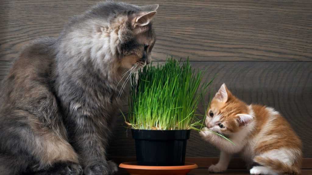 Поедая их, кошки восполняют нехватку микроэлементов и витаминов в организме. Дворовые коты едят овес, осоку, лебеду. Домашние кошки, питающиеся исключительно мясом и кошачьим кормом, также хотят разнообразия, пробуя комнатные растения и цветы в вазах. Другая причина состоит в том, что в дикой природе основа кошачьего рациона представлена птичками и грызунами, которых кошечка поглощает с перьями, костями, и шерстью. ЖКТ животного не может их переварить, из-за чего кошка отрыгивает не переваренную пищу. Коты для облегчения процесса едят траву, чтобы травинками раздражать желудок, вызывая рвотный рефлекс. Еще коты вылизываются, глотая комки собственной шерсти, а трава очищает им желудок. Иногда вообще не едят кошки растения, но такие случаи не часты.