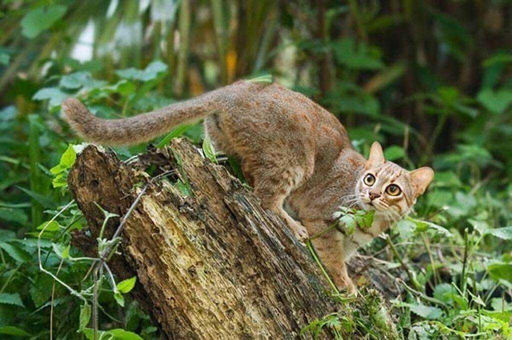 Ржавая кошка — одна из самых маленьких представителей кошачьих, чей вес достигает не больше 1,5 кг. Обитают эти малыши, популяция которых не превышает 10 тыс. особей, только на Цейлоне и в Индии, причем если «островные» кошки живут во влажных джунглях, то «континентальные» — в засушливых открытых местах. Мяуканье эти кошек очень схоже с мяуканьем домашних, да и приручить их довольно легко.