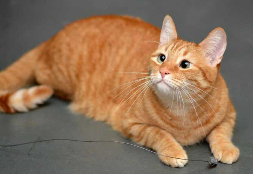 Отмечается замедленность кошки при движении, также у нее необычный голос.