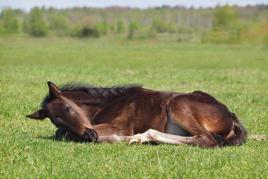 На самом деле лошади спят не стоя, а лежа на земле.