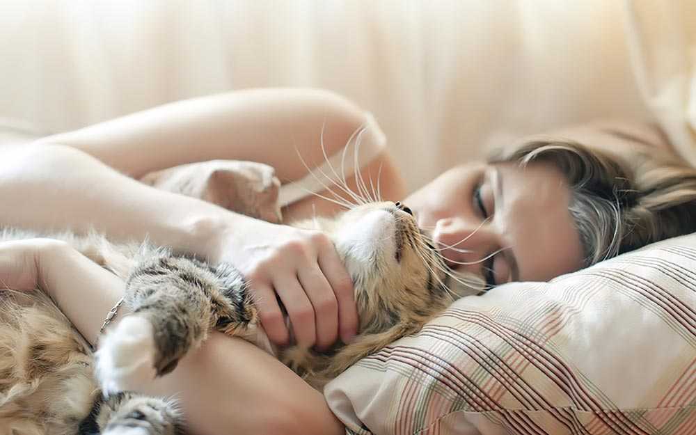 Со временем питомец привыкнет к режиму и будет засыпать вместе с вами. Если в доме появится новое животное, то кот обучит его распорядкам самостоятельно.