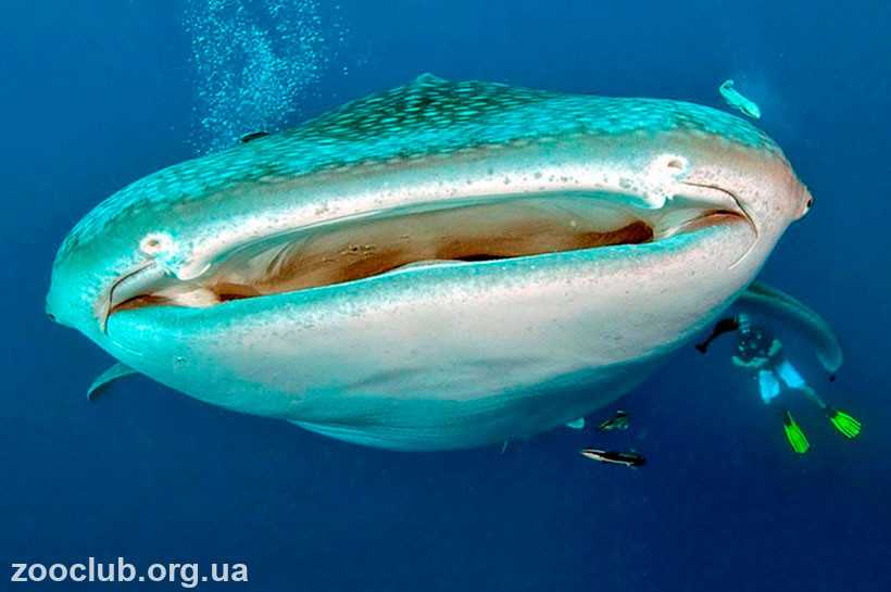 Китовая акула, несмотря на устрашающие размеры, людям не опасна. Ведь питается она планктоном — мельчайшими организмами, содержащимися в морской воде.