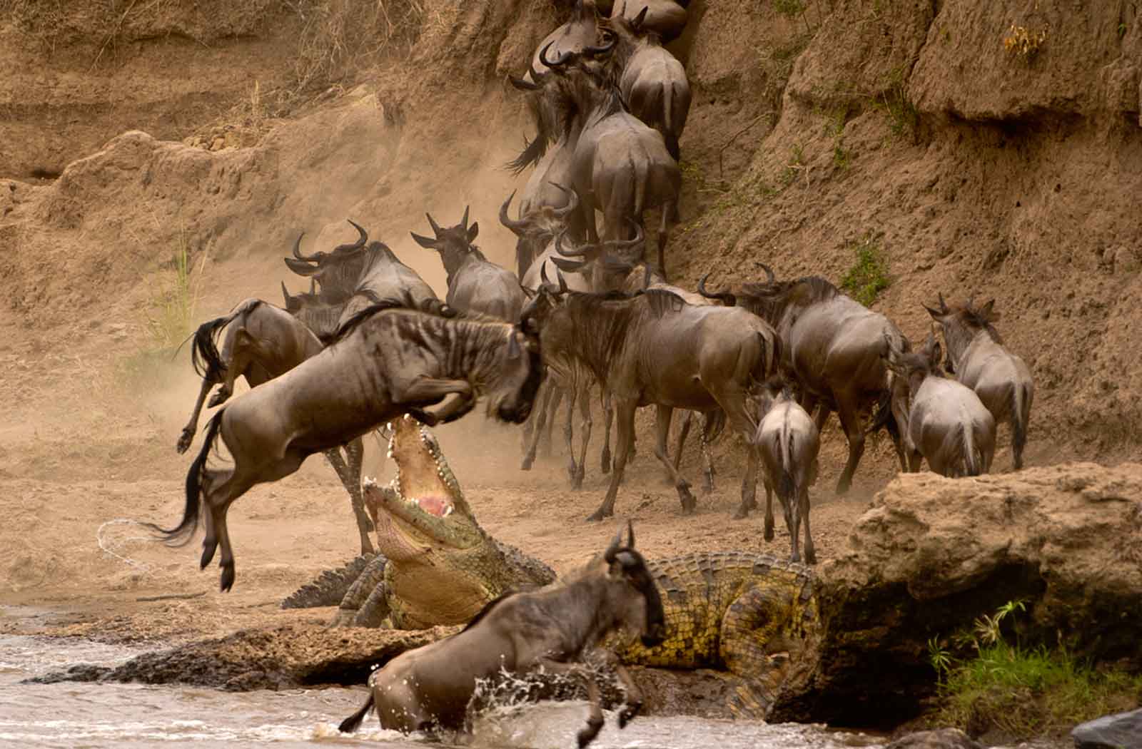 Массивные челюсти крокодила с легкостью дробят череп буйвола, а сильные рывки головой и особый прием «смертельного вращения» мгновенно разрывают добычу на части. Жевать крокодилы не умеют, поэтому, умертвив жертву, мощными челюстями выкручивают куски подходящей плоти и глотают целиком.
