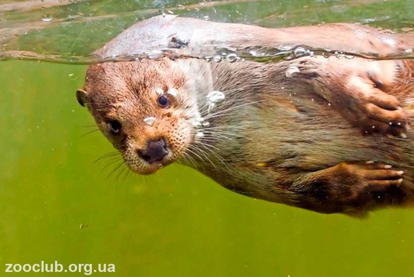 За счет маленьких глаз выдра отлично видит на суше и под водой. Также у них короткие лапки и острые ногти. Пальцы лап соединены перепонками, что дает возможность хорошо плавать.