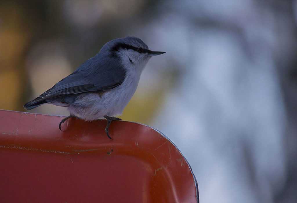 Птица поползень (фото смотрите ниже) обладает довольно длинным и прямым клювом. Черная полоса, проходящая через глаза, придает ей любопытный и лукавый вид.