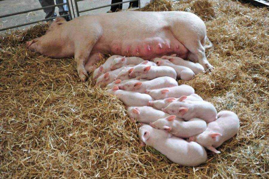 - Многоплодие свиноматок, выражающееся в количестве живых поросят при рождении в гнезде; может колебаться в широких пределах. Свиноматки пород, разводимых в хозяйствах Беларуси, дают по 10–12 поросят за опорос. Иногда свиноматки белорусского типа крупной белой породы приносят более 30 поросят. Этот показатель бывает наиболее высоким до 4–5-го опороса, а затем снижается. При дальнейшем увеличении многоплодия до 18–20 поросят получение 1 т свинины ускоряется в 1,6 раза, а себестоимость выращивания поросенка снижается на 48 %.