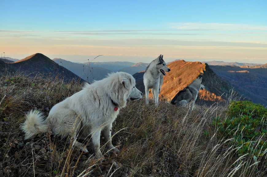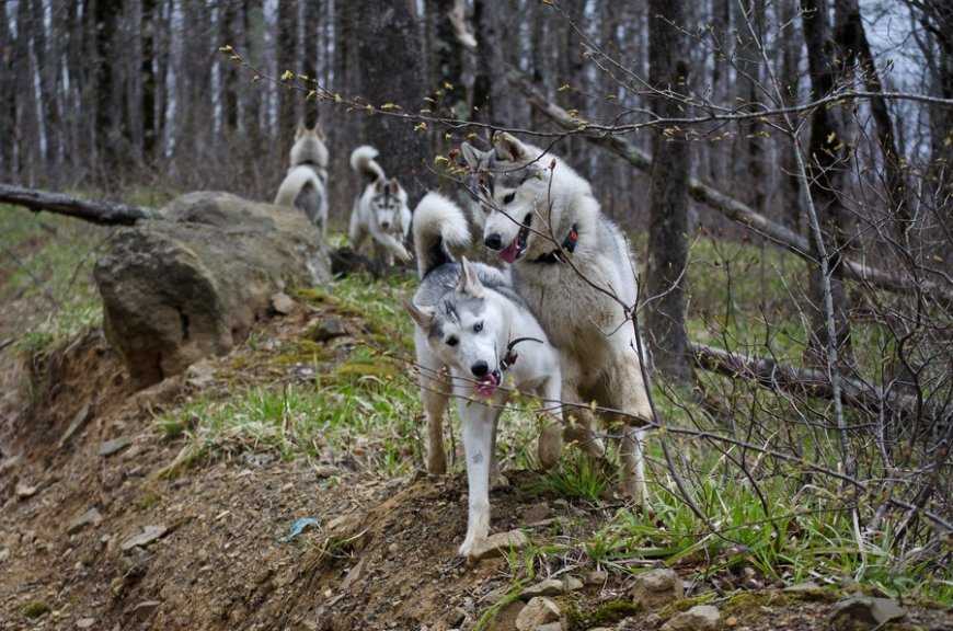 Несколько собак в походе – это, во-первых, очень весело, а во-вторых, неизбежно, если вы ищете попутчиков среди единомышленников-собачников. Мы каждый год устраиваем вылазки в лес, в предгорья с целой группой хаски и их хозяев. Вероятная проблема от нескольких собак в одной компании очевидна: они могут подраться. Кобелей, особенно молодых, лучше познакомить заранее. Возможно, они выяснят, кто из них круче, еще перед походом — во всяком случае, ветеринар, который сможет зашить раны, будет поблизости