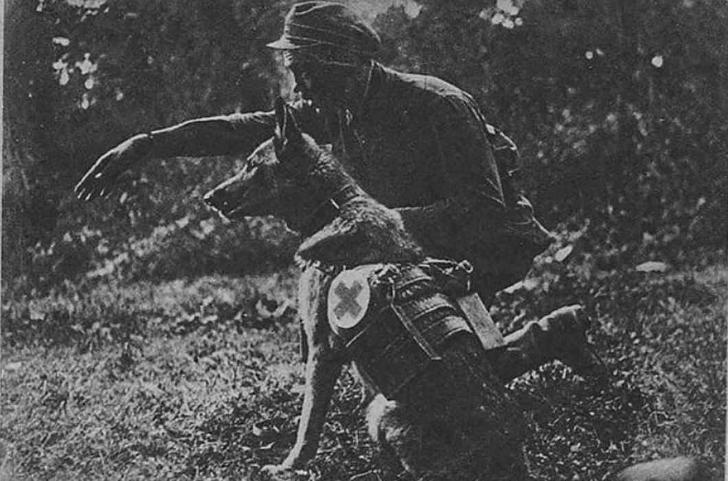 - Поиском раненных бойцов занимались ездовые и санитарные псы. В их задачу входило не только найти человека, но доставить его к врачу.