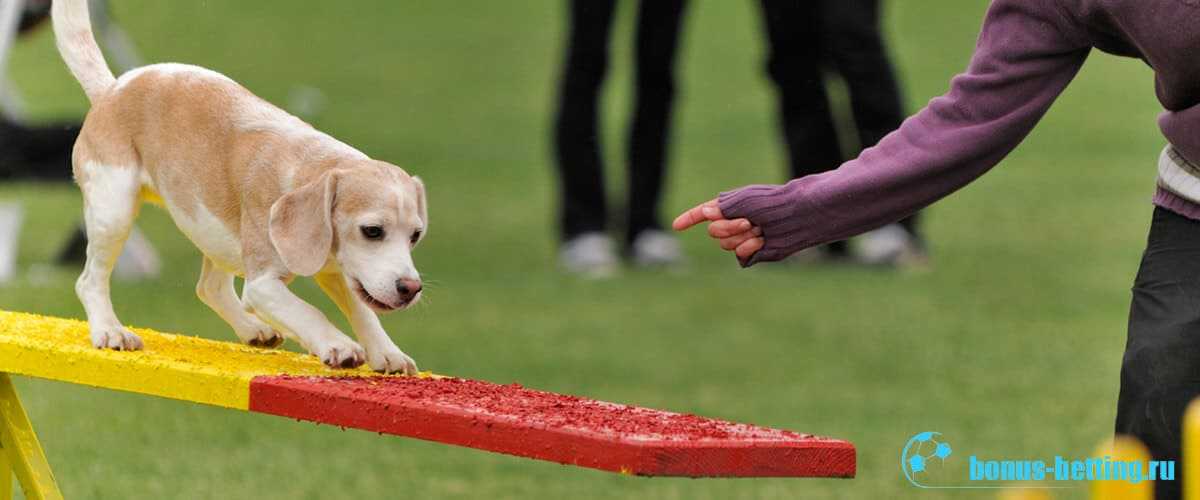 Собака, проходящая препятствие, должна держать равновесие и не терять при этом скорость. Также есть контактные части.