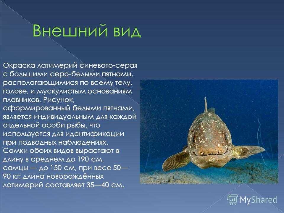 Внешний вид латимерии остался таким же, каким был миллионы лет назад, и он единственный из кистеперых рыб, оставшийся в исходном состоянии до нынешних времен.