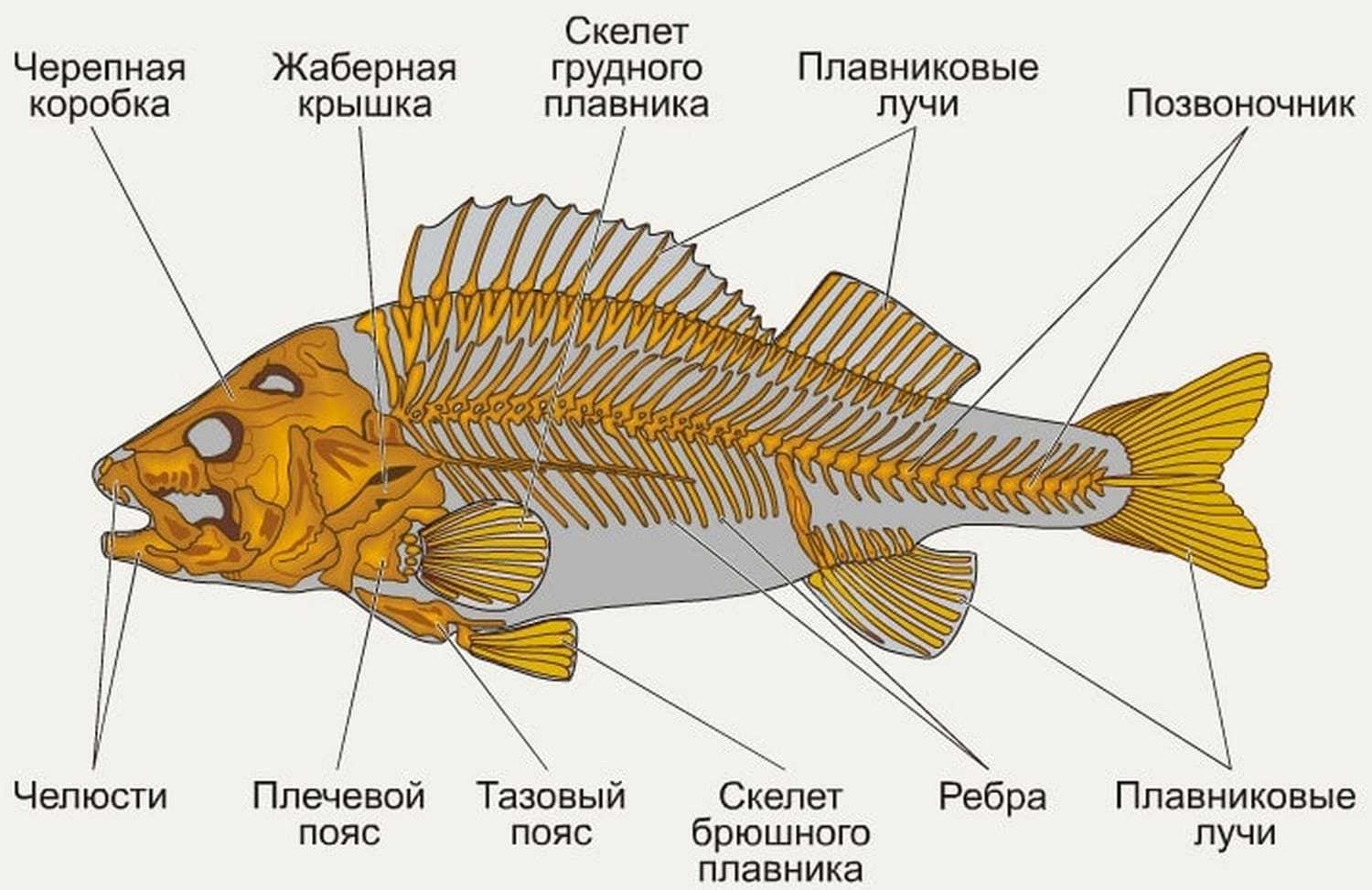 Внутреннее строение костных рыб обладает сходством с хрящевыми. Организм костных рыб выглядит следующим образом: