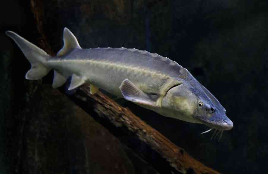Особенность осетра – длинное, вытянутое тело и нос, который выглядит, как кинжал.