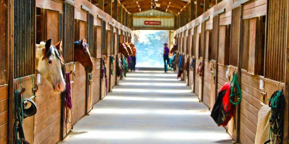 Если говорить о размерах конюшни, то тут есть свои тонкости. Минимальная высота потолков – 3 м. Чем выше потолок, тем лучше осуществляется процесс вентиляции (в идеале высота должна быть 3,2-3,5 м). При денниковом содержании площадь индивидуального загона – не меньше 3,5-4 м².