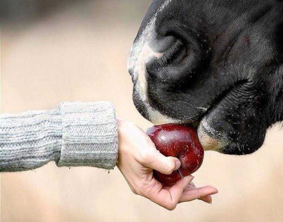 Фрукты и овощи лучше разрезать поперек и вдоль, чтобы у лошади не возникало удушья.