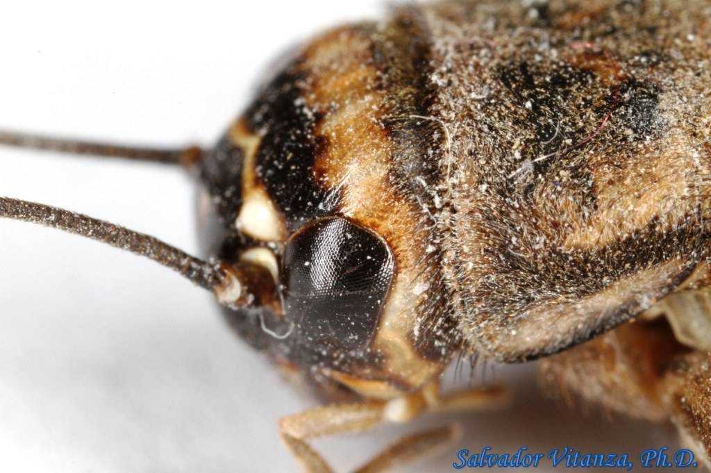 На голове сверчка, напоминающей по форме сплюснутое яйцо, четко просматриваются 3 темные дуговидные полоски. Небольшие глаза, расположенные по ее бокам, имеют сложное фасеточное строение.